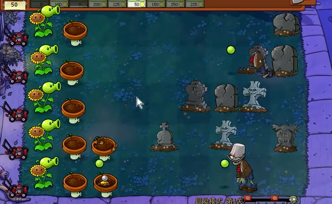 植物大战僵尸杂交版第四关是个夜晚关卡,需要特别注意墓碑和阳光管理。推荐选择豌豆向日葵、小盆菇、双发仙人掌、阳光豆、火炬坚果和寒冰香蒲射手这些植物。开局先种一列豌豆向日葵保证阳光供应,墓碑周围放上免费又冷却快的小盆菇,记得在小盆菇上面叠加火炬坚果和土豆雷来增强防御。阳光豆也很重要,它能生产阳光同时还能攻击,前期尽量多种。