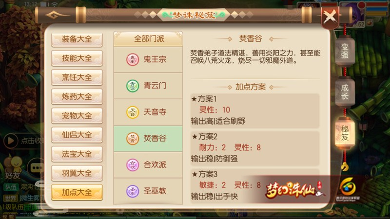 梦幻诛仙手游焚香谷作为法术单体输出的核心门派,在土豪玩家的PK玩法中需要极致强化爆发能力与生存策略。全灵性加点(10灵)是焚香土豪PK的核心选择,通过极限堆叠灵性属性,配合高阶装备的启灵、洗魂及法宝镶嵌弥补速度与防御短板,确保每回合双龙旋或烈焰无双击的爆发伤害足以压制对手。由于土豪玩家的资源投入足以支撑属性全面性,全灵加点能最大化焚香法系秒杀王的定位,尤其在集火点杀时无需休息回合的优势显著优于鬼王等物理输出门派。