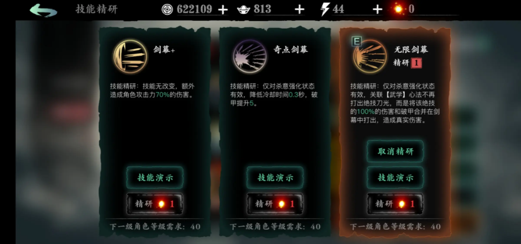 在实际操作层面,建议玩家在开启精研功能前先熟悉各技能的基础效果。由于精研点重置不消耗资源,初期可以大胆尝试不同分支的组合效果,后期再根据实战体验优化配置。优先强化杀意消耗类技能往往能更快提升推图效率。随着游戏进程推进,可通过持续挑战更高层数的无尽劫镜积累精研点,逐步完善技能体系的构建。