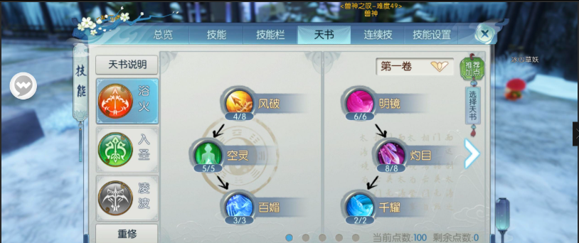 大羿王路线推荐主浴火副入圣的极限输出配置,狐影术路线采用主凌波副浴火的生存向搭配,客留住路线则需特殊调整天书点法以兼顾控制效果。法宝搭配方面,PK场景推荐花非花、羽毛、斩龙等提高容错率,副本场景则适用天琊或碎星增强输出。技能灌魔优先选择天衍阵法、轮回闪、赤乌坠等核心技能,连续技配置因技能栏位紧张通常只需设置一个基础连招。职业操作需注意保持距离优势,合理利用12码射程的客留住和可移动施法的轮回闪进行风筝战术。