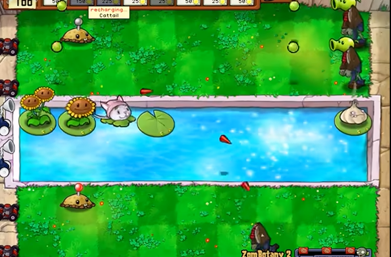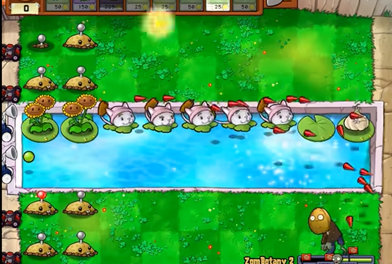 植物僵尸2是经典关卡植物僵尸1的进阶版本,该关卡中会出现更多种类的植物僵尸,包括豌豆射手僵尸、坚果墙僵尸等高攻击性单位。合理利用土豆地雷、窝瓜等廉价植物进行前期防御是关键,同时需要优先在泳池区域种植向日葵以保证阳光供应。开局阶段建议将向日葵集中种植在1、6行,便于后续通过大蒜调整僵尸行进路线。若遇到豌豆射手僵尸出现在向日葵所在行,需立即使用窝瓜清除威胁。