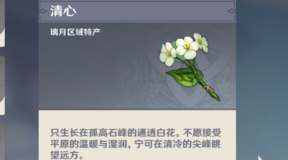 秋歌需要玩家提供三份清心作为任务道具。清心是璃月地区的特产植物,通常生长在高海拔的山顶或悬崖边缘,呈现为白色通透的花朵。获取清心的主要方式包括野外采集、商店购买以及尘歌壶种植。野外采集是最直接的途径,推荐前往轻策庄、琥牢山、庆云顶等区域,这些地点清心分布较为密集。