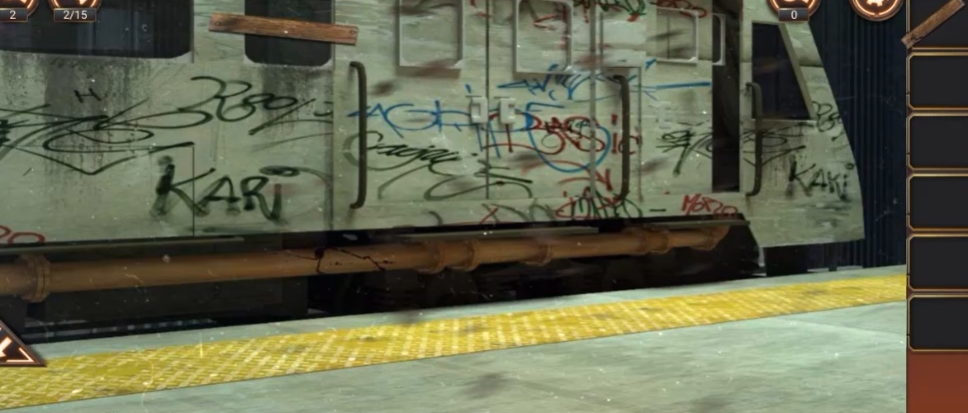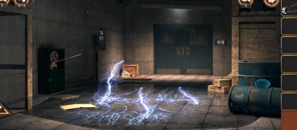 隐藏关卡的设计比主线更为复杂,谜题之间的关联性更强。初始场景是一个类似接待室的区域,左侧柜台可以拾取硬币和电线,门右侧的取票机需要连接电线才能互动。电源附近的暗格需要用硬币拆开螺丝,按下按钮后接通电源。取票机激活后可获得一张通行票,用于打开内室的门。内室地面有一张空白纸张,铁格门上挂着绳子,这两样物品在后续解谜中至关重要。
