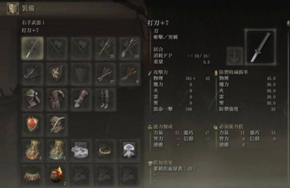 最后武士刀的强度虽然高,但也要根据咱们的加点来搭配。灵巧流适合尸山血海和长牙,智力流首选名刀月隐,信仰流则可以试试龙鳞刀。战灰方面,切腹、鲜血斩击和居合都是热门选择,能进一步提升输出效率。