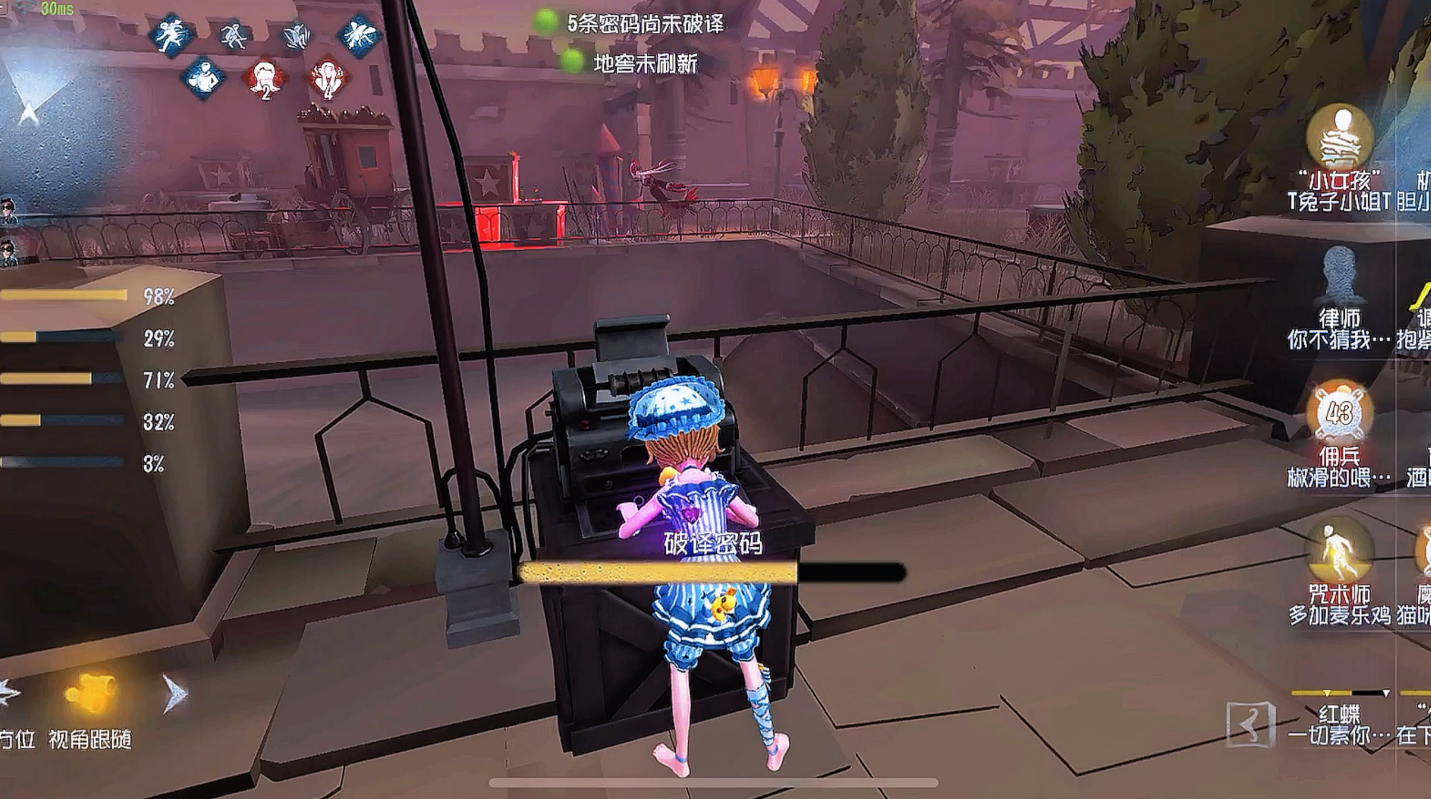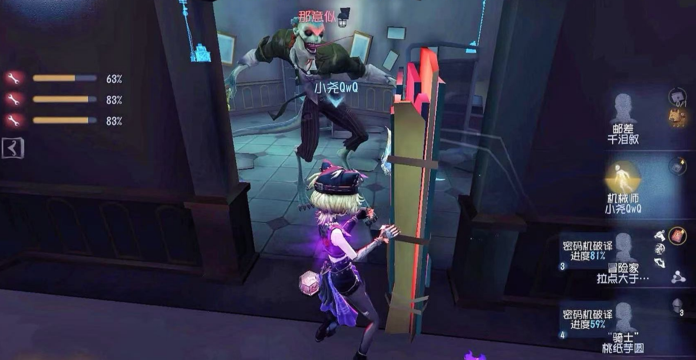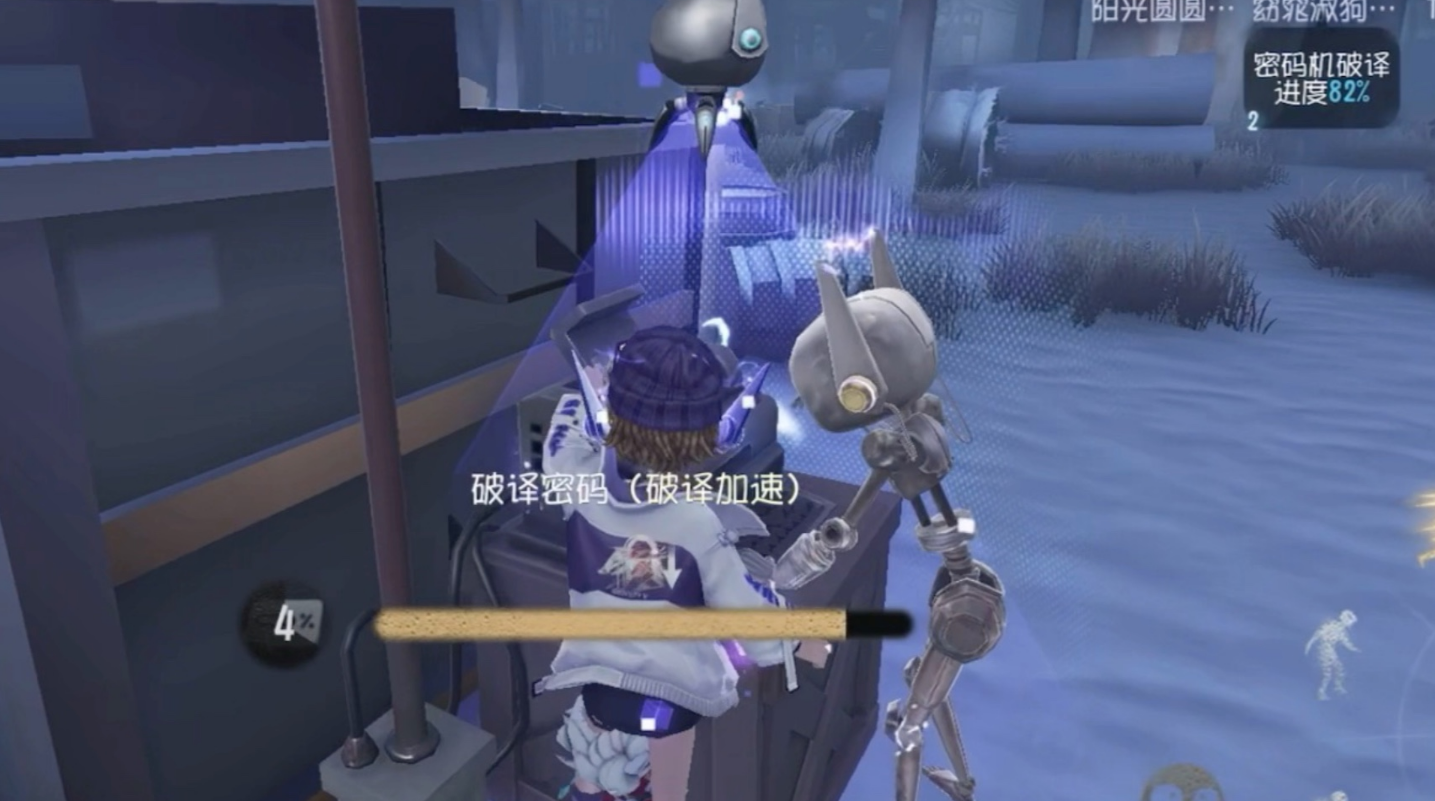 双线操作是机械师的核心技巧,本体与傀儡需保持远距离分修两台密码机。傀儡破译速度同样为125%,且不受胆怯特质影响。当队友受伤或上椅时,本体破译速度会大幅降低,应切换至傀儡继续破译。需注意傀儡电量消耗,每次校准失败会损失3%-5%进度,精准切换可减少炸机风险。若监管者靠近傀儡所在密码机,应立即停止操控并隐藏本体,避免因爆点暴露位置。