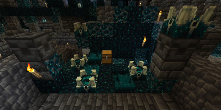 找到循声守卫,咱们得先知道这家伙藏在地底深处的DeepDark群系里。这个区域可不是随便挖挖就能碰到的,它通常生成在世界最底层,靠近基岩层附近。暗蓝黑色的方块是它的地盘标志,如果小伙伴们在挖矿时突然发现周围光线变暗,还出现一些奇怪的传感器方块,那就说明离目标不远啦。