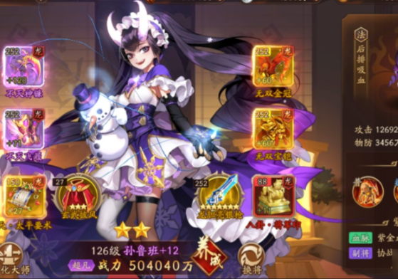 孙鲁班作为吴国紫金武将,其核心定位是团队续航与伤害转嫁。她的技能组合包括后排法术伤害、生命偷取、全体减伤提升以及诅咒链接效果,能够显著提升队伍的生存能力。若要将孙鲁班纳入阵容,需优先替换功能重复或生存能力较弱的辅助型武将,例如小乔。小乔虽提供控制与增益,但孙鲁班的团队减伤和傀儡术更能适应持久战需求,尤其在灼烧流体系中可延长回合数以发挥持续伤害优势。