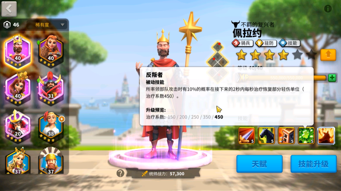 反叛者是佩拉约的生存向被动,普攻有10%概率在2秒内持续恢复轻伤单位。虽然触发概率不高,但配合骑兵的高攻速能有效提升续航能力。这个被动让他在野战混战中更持久,尤其适合搭配拜巴尔等AOE型副将,弥补骑兵脆皮的短板。