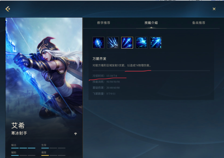 艾希的被动技能冰霜射击使她的普攻和伤害性技能附带减速效果,暴击会强化减速但不会增加额外伤害。2技能万箭齐发作为主要输出手段,拥有锥形范围伤害和减速效果,前期主加可增强清线与消耗能力。1技能射手的专注通过叠加专注层数提升攻速和伤害,是持续输出的关键。3技能鹰击长空提供全图视野侦查功能,虽然不直接参与战斗但具有重要战略价值。大招魔法水晶箭作为全图控制技能,其眩晕时长随飞行距离增加,是开团与反打的利器。