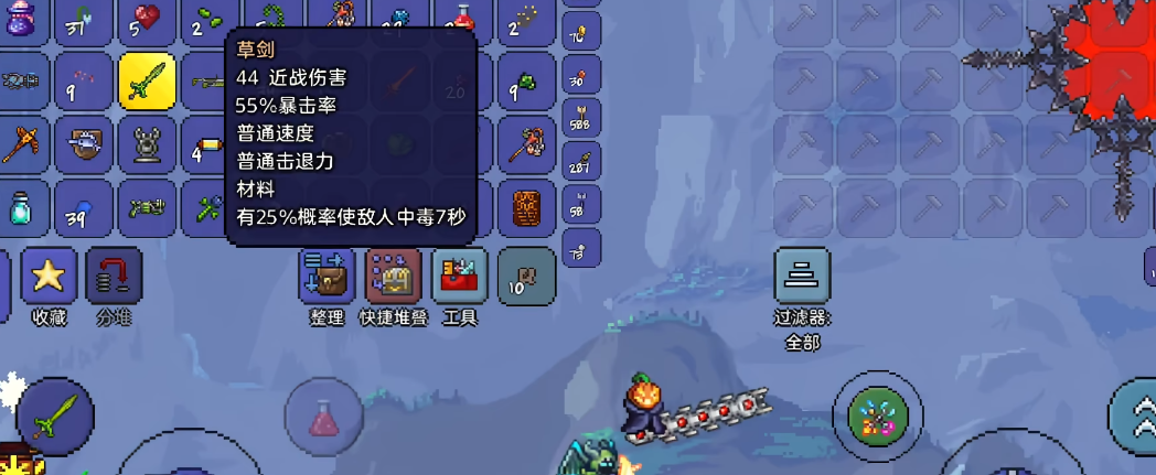 先说说血腥屠刀或魔光剑,它们需要用腐化之地的魔矿锭或猩红之地的猩红锭制作。魔光剑要10个魔矿锭,血腥屠刀要10个猩红锭,记得在铁砧旁边合成哦。草剑的材料稍微麻烦点,得去丛林地下找丛林孢子和毒刺,12个孢子加12个毒刺就能做出来。妖刀村正比较看运气,得去地牢开黄金宝箱,记得先打骷髅王才能安全进地牢。