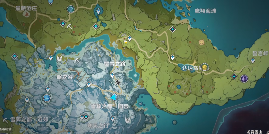 要到达龙脊雪山山顶,必须先完成山中之物任务,解冻三块分散的冰碎片。第一块位于覆雪之路,需收集四块深赤之石击碎坚冰;第二块在眠龙谷,需激活五个冰柱并按仙灵飞行顺序点亮;第三块在星萤洞窟深处,需破除护罩后寻找深赤之石。三块碎片解冻后,风墙消失,从七天神像后的山洞出发沿山路攀登即可抵达山顶。