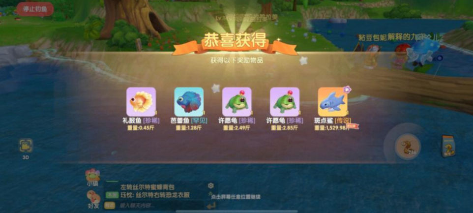 钓鱼操作技巧方面,需在感叹号首次出现时点击收竿,待鱼游入绿色圆圈范围内再次点击完成捕获。每日各钓鱼场景存在101-103次上限,达到后需等待次日刷新。家园池塘无次数限制,可作为补充钓点。渔网可通过商城金豆购买,适合快速获取目标鱼类,但需注意每日使用次数与场景上限同步。