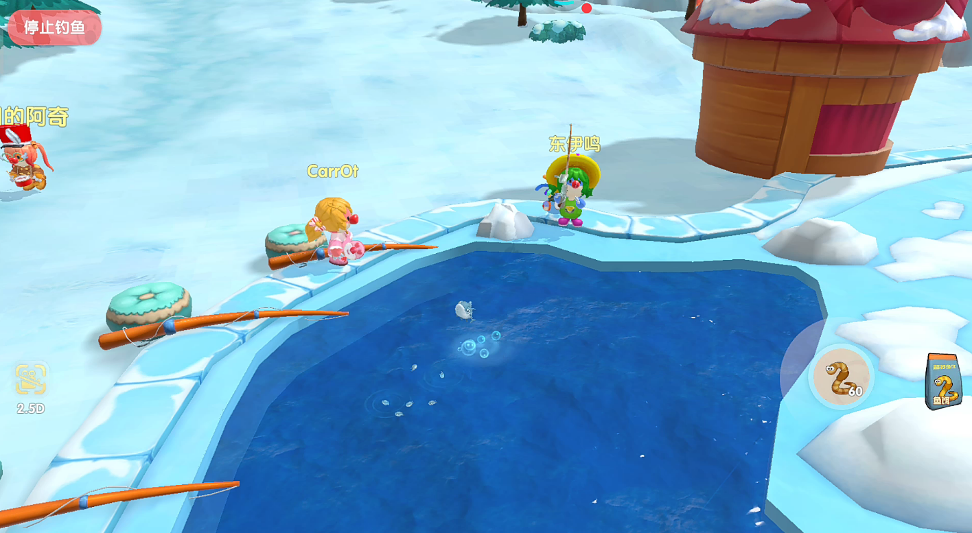 抵达雪山后,入口处即可看到钓鱼点,靠近鱼塘后即可开始垂钓。需冰川红虾属于高级食材,必须使用中级或以上品质的鱼饵才能成功钓取,低级鱼饵无法触发其刷新机制。虽然冰川红虾全天均可钓取,但根据实际测试,清晨和傍晚时段的钓取概率相对较高。