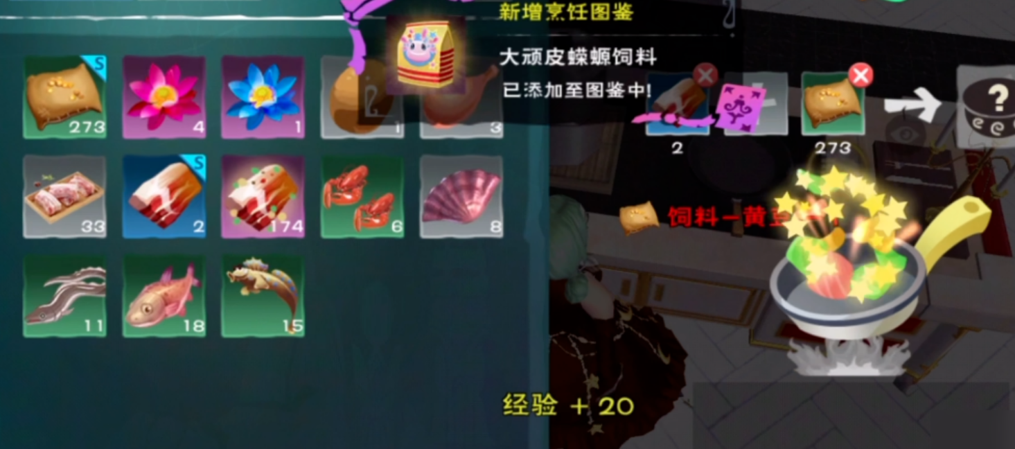 饲料制作方面,顽皮蝾螈饲料由优质肉、弹涂鱼饲料包和黄豆饲料包合成。弹涂鱼可通过仙女河、晴方河等水域使用小蚯蚓垂钓获取,钓获概率较高。大顽皮蝾螈饲料需将优质肉替换为稀有肉,其余材料配比相同。黄豆可通过平原地区采集获得,5个黄豆可合成1个黄豆饲料包,建议提前储备足够数量。