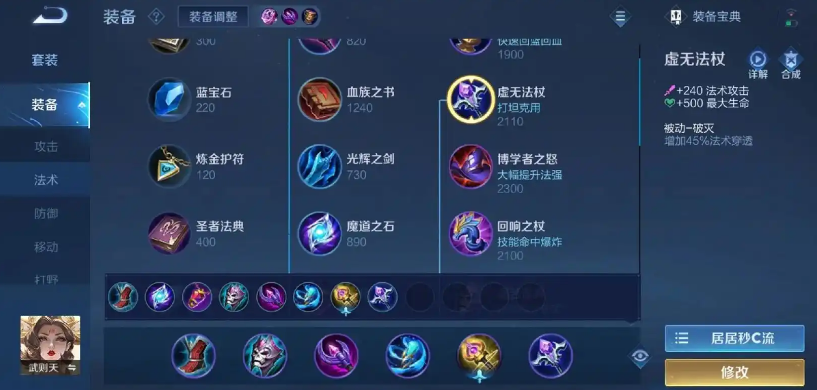 推荐的出装顺序从巫术靴开始,它帮助你快速穿梭野区,接着优先出进化水晶来维持血量和蓝量,保证你能持续刷野或抓人。中期转向噬神之书,这件装备大幅提升伤害输出和冷却缩减,让你在团战中发挥更强作用。后期根据局势调整,如果对方物理英雄多,可以补极寒风暴或红莲斗篷增强防御;如果团队需要更多控制,考虑痛苦面具或冰霜法杖来辅助队友。出装要灵活,别死守顺序,根据对手阵容变化及时换装,这样才能最大化武则天的潜力。