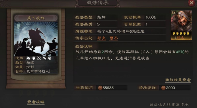 战法搭配需紧密围绕关平的被动战法奋突展开。该战法通过普通攻击叠加伤害与缴械效果,因此核心思路是强化普攻频率及触发效率。优先选择强攻类战法提供连击状态,使关平能在单回合内多次普攻,快速叠满奋突增益;突击战法暗藏玄机或手起刀落作为次选,在连击加持下可高频触发额外伤害。若需增强控制能力,可搭配群体缴械战法如盛气凌敌,形成双缴械链压制依赖普攻的敌方队伍。需规避需要准备回合的主动战法,避免破坏输出节奏。