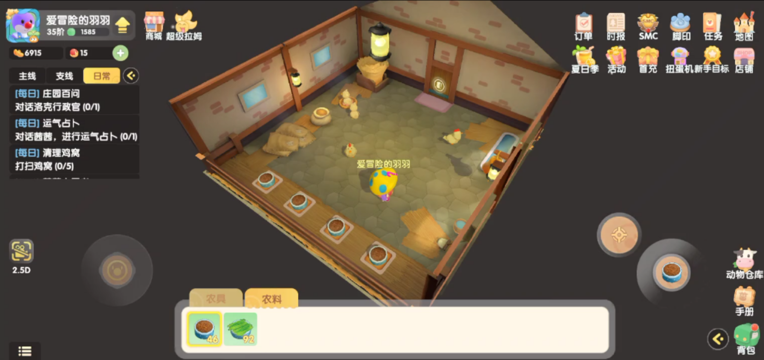 制作阳光酥油肉松所需的食材包括鸡蛋、胡萝卜和猪肉,具体数量为两个鸡蛋、两个胡萝卜和三份猪肉。鸡蛋的获取需要玩家在鸡舍中饲养小鸡,通过日常照料和收获获得;胡萝卜则需要玩家购买种子后在农场种植,种植过程涉及播种、浇水和管理,成熟后即可收获;猪肉的获取相对直接,但前提是玩家必须将农场主等级提升至56级,通过完成游戏任务或活动积累经验值来达成这一等级要求。食材的收集是制作的关键环节,玩家应优先确保农场和鸡舍的运作效率。