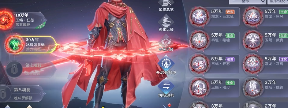 PVP通常选择攻击型魂环,比如飞行系或邪虫系,配合高攻击加点能快速收割残血敌人。长图则建议搭配暴击率魂环,比如冰碧蝎或狂怒,这样能更好地触发唐晨的被动增伤效果。如果小伙伴们有专属魂骨,尤其是6星右手骨,可以进一步优化加点,减少速度依赖,专注攻击或暴击属性。