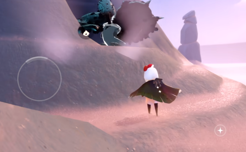 第一位先祖位于起始点左侧的山洞中。穿过初始洞穴后,玩家会看到一片沙漠区域,左侧有两个相邻的山洞,其中靠左的山洞内便是指路先祖。点燃先祖并跟随其回忆轨迹即可解锁基础动作。第二位先祖在沙漠阶梯的背面,即斜坡下方。从起飞平台绕到背后即可发现跟我走先祖,其动作和服饰兑换需消耗特定数量的蜡烛和爱心。