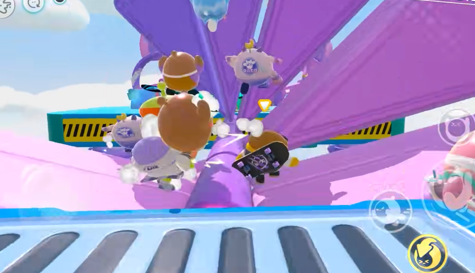 跳跃时需控制落点精度,利用边缘弹跳可缩短路径。飞扑技能能跨越常规无法到达的平台,但要注意落地后的硬直时间。重量值管理是关键,过轻易被击飞,过重则影响机动性,需根据关卡类型动态调整。摆脱对手的举高高控制时,要及时使用挣脱按钮并快速位移。