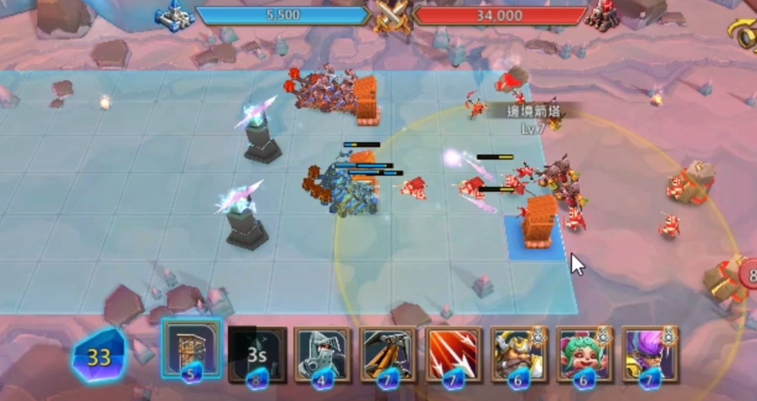 关卡中后期需注意敌方边防官的突进。当敌方边防官接近防线时,应立即使用控制技能如冰冻或眩晕打断其攻击,同时集中火力将其消灭。若资源允许,可以在战场两侧布置少量步兵吸引火力,为主力输出争取时间。拆塔阶段建议保留至少两个范围技能,用于应对突然刷新的鼠人援军。