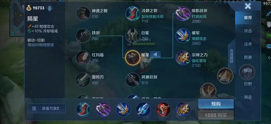 在出装方面,光信的核心装备包括冷静之靴、暗影战斧、破军、碎星锤、名刀司命和宗师之力。冷静之靴提供早期冷却缩减,加速技能循环;暗影战斧作为首件核心装,增强物理穿透和生命值,应对前期对线需求;破军大幅提升攻击力,配合光信技能实现高额爆发伤害;碎星锤针对敌方高防御阵容,增加物理穿透效果;名刀司命则在关键时刻提供生存保障,支持丝血反杀;宗师之力强化普攻衔接,补充技能间隙的输出。这套出装顺序兼顾了伤害积累与防御平衡,初期以发育为主,中后期转向爆发输出,玩家可根据敌方阵容微调,如遇法术威胁时替换为魔女斗篷,但需保持核心装备的连贯性以确保光信的战场统治力。