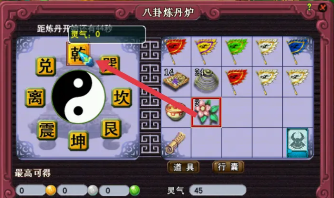 八卦炼丹炉的核心玩法是通过消耗特定材料注入灵气,利用八卦方位进行押注。炼丹炉位于傲来国(坐标115,116),每日开放时间为10:00至22:00。玩家可选择二级药、宝石、烹饪、图册等物品作为灵气来源,其中垃圾图册和低级宝石因灵气转化率高且成本低,成为性价比较高的选择。注入灵气后,系统会根据开奖结果发放金砂丹、银砂丹或铜砂丹,用于兑换天眼、易经丹等奖励。