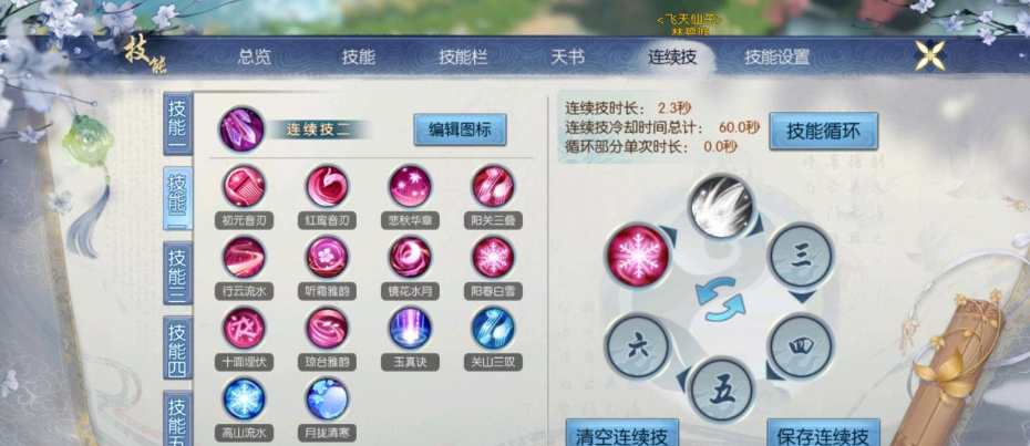 副本辅助流技能栏顺序为:琼台雅韵、阳春白雪、听霜雅韵、镜花水月、行云流水、昆玉。PK控制流则优先放置九霄绝响、十面埋伏、云水雅韵、镜花水月、秋声、梅花三弄。宠物选择抽蓝回血宠,主忠辅健搭配化功与甘霖技能,弥补天华解控能力的不足。