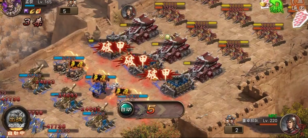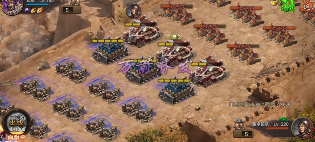战车方面三车配置为9、10、3、3,王朝等级最好达到九级,同时确保拥有固若金汤技能。这些基础配置能大幅提升你的生存和输出能力,为后续战斗打下坚实基础。推荐使用夏侯惇作为首发武将,带上副将并装备烛龙套装,利用反战法机制破解敌方第一辆战车的护甲。孟获作为第二武将,选择锋矢阵和灵龟套装,通过吸血和喷火技能消耗敌方第二辆战车。