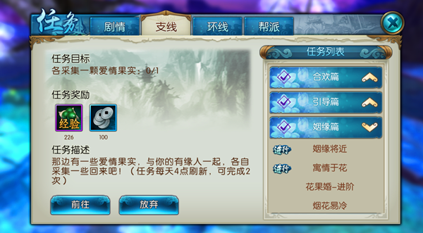 姻缘轮回界面包含基础筛选机制,玩家可根据自身需求设置查找条件。成功匹配后,双方需组队完成特定情缘任务寓情于花,该任务旨在通过合作增进彼此了解。任务过程中产生的好感度是后续发展关系的重要参数,达到规定数值方可解锁更多互动内容。系统不强制要求立即确立关系,为玩家保留充分的选择空间。