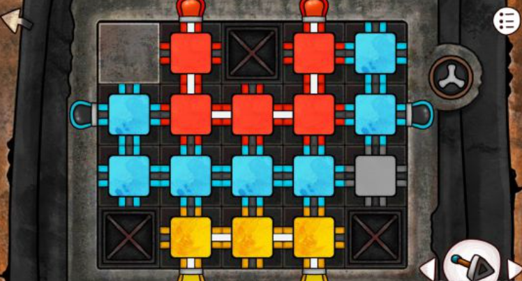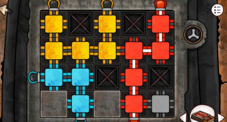 进入灯塔后直接爬到顶层,在灯泡下方会发现一个接线盒。这里需要把红黄蓝三种颜色的电线整理连通,让它们与外面小灯泡的颜色对应。黄色代表线路已经连通,接通后线路会变白。灰色方块是无法移动的障碍物,需要把它们移到角落或边缘不影响线路的位置。右上角有重置按钮,如果思路混乱可以随时重新开始整理。