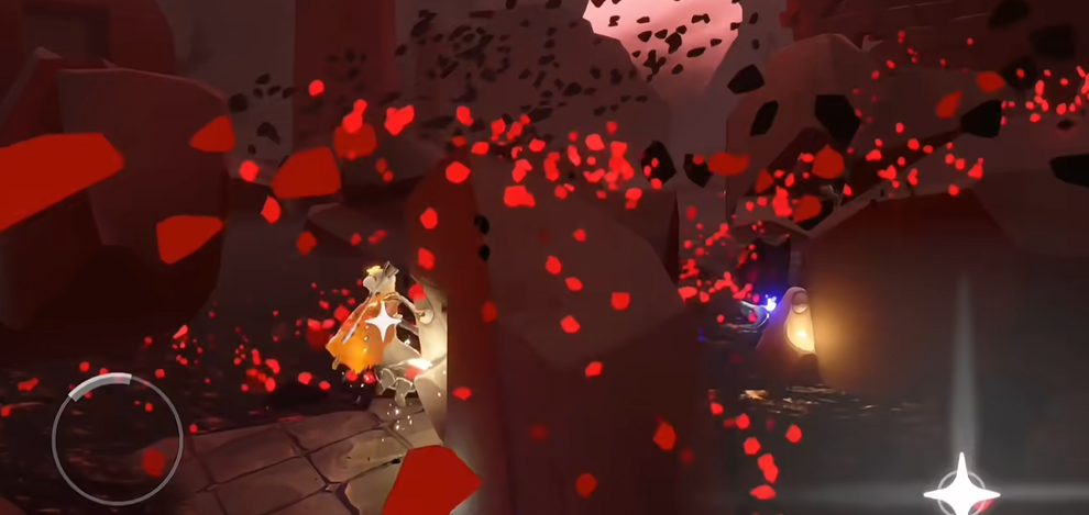 最后阶段是献祭环节,咱们需要把光之翼交给沿途的石像,每点亮四个石像就能获得一根升华蜡烛。这里要注意控制节奏,尽量在红石雨的间隙移动,避免被砸到。当光之翼耗尽时,角色会进入重生状态,跟着飞鸟的指引就能完成整个流程。