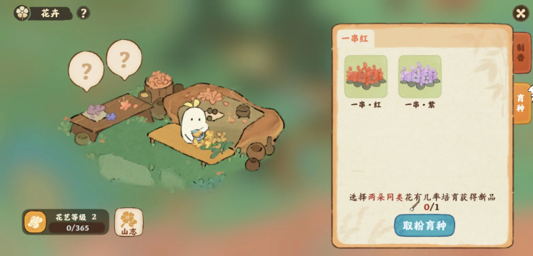 培育新花色是种花玩法的进阶内容,玩家需使用培育台将收获的花朵进行组合;每次培育消耗一个取粉笔,花朵放置顺序会影响新花色出现的概率,例如异色花组合可能产生更稀有的变种;只有通过种植收获的花色才可用于培育,这鼓励玩家先积累基础品种再尝试创新;培育结果具有一定随机性,但规律性操作能逐步解锁更多花色,丰富花园多样性。工具如取粉笔和取苗剪在种花过程中扮演重要角色,玩家可在游乐的杂货铺花费玥琅购买这些工具,或通过山遇商店使用青田玉坠兑换;合理利用工具能优化培育效率,例如取苗剪用于修剪花朵以提升品质。