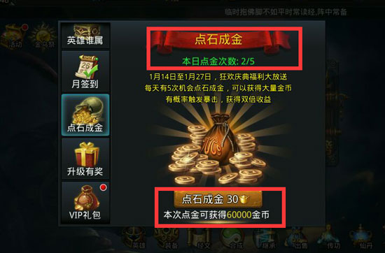 金币还能在聚宝洞府里淘到好装备,这里时不时会刷出金色和紫色的高级装备。不过要注意合理分配金币,别一股脑全花光。建议优先升级主力英雄的装备,经文开孔等有了新经文再弄。平时多扫荡副本积累金币,遇到限时活动更要积极参与,这些都是稳赚不赔的买卖。记住金币要花在刀刃上,这样才能最大化提升实力。