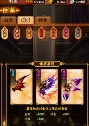 攻击型神翼是专为提升武将输出能力而设计的装备,主要通过增加暴击率和攻击加成属性来强化攻击型武将的战斗力,这类神翼适合搭配吕布、吕蒙等以输出为主的角色,能有效提高斩杀效率,在战斗中发挥关键作用,玩家应优先考虑为核心输出武将配置此类神翼,以最大化阵容的整体伤害输出。