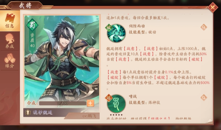 魏延通常在4号位登场,装备火凤葫后拥有独特的偷取机制和生存能力,他的技能能免疫异常状态并恢复生命值,这让他在持久战中更可靠,尤其面对控制型敌人时能稳住阵脚,魏延的循序渐进伤害输出虽不如姜维爆发高,但能有效削弱敌方前排,保护整个团队,如果你偏好稳健打法或阵容中缺少坦克角色,魏延会是你的坚实后盾。