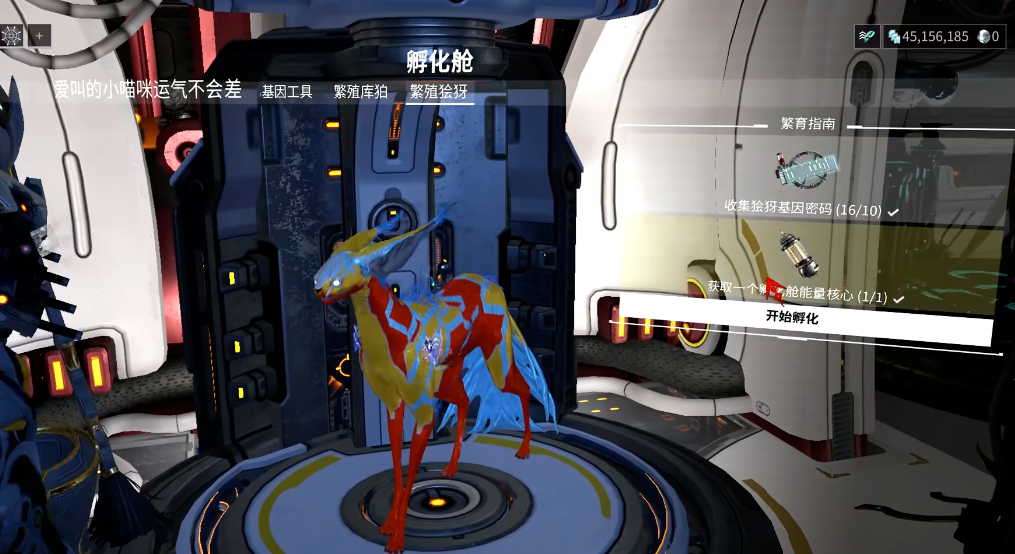 在飞船的狯犽孵化器中放入10个狯犽遗传基因密码和1个孵化器能量核心,启动孵化程序。这个过程完全随机,可能产出柴郡狯犽(即好运猫)或灵镜狯犽(镜像猫),无法通过操作控制结果,因此可能需要多次尝试才能获得好运猫。孵化成功后,好运猫将提供六大增益效果,如暴击几率加成或能量返还,这些效果在战斗中自动触发,为玩家带来显著优势。