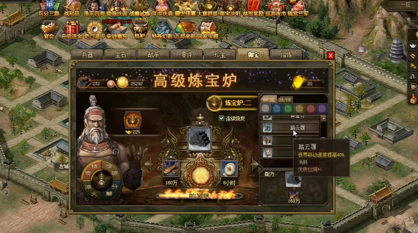 装备踏云履时,记得你的角色需要达到171级并完成主线任务,这样才能开启御宝装备栏。 一旦开启,直接把踏云履放入栏位即可生效,它会自动提升你的移动速度,让你在攻城或撤退时更灵活。踏云履还附带攻击力和防御力加成,这对你的整体战斗力是个不小的提升。