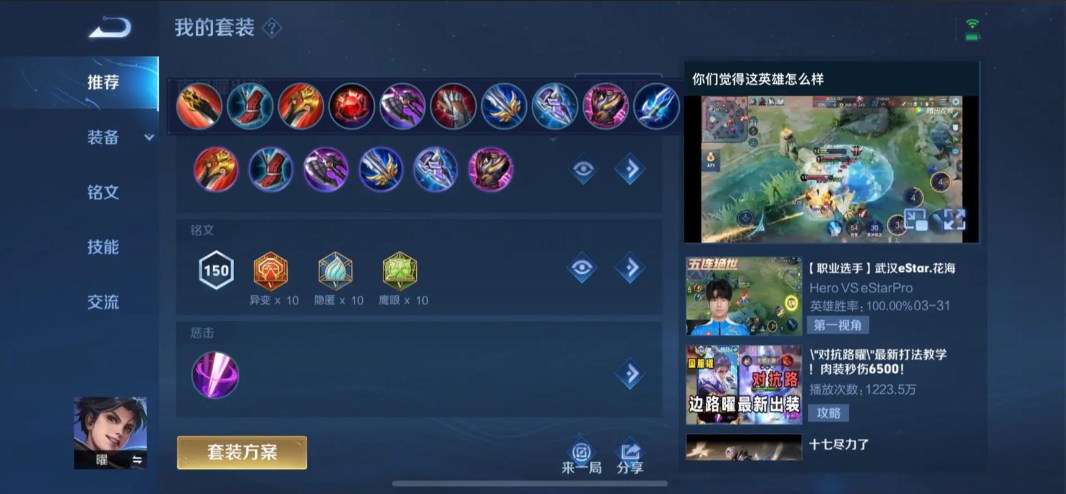 铭文方面需要与这套出装思路高度协同,主打极致的物理穿透与攻击力,以弥补前期部分防御属性的缺失。推荐搭配8个异变与2个红月,搭配10个鹰眼和10个隐匿。这套铭文提供了高额的物理攻击、物理穿透以及可观的移速加成,确保了曜在前中期就具备强大的伤害能力,隐匿的移速加成也让其追击与拉扯更加顺畅。暴击率的少许提升,偶尔能带来意想不到的惊喜。核心思路就是让曜的每一次技能连招都更具威胁,通过高频的技能释放来触发宗师之力的被动,打出成吨伤害。