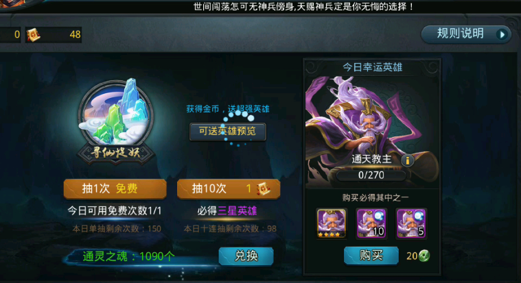 寻仙捉妖这个抽卡功能是获取碎片的重要途径。用元宝去抽英雄,如果抽到重复的英雄,系统会自动把它们分解成通灵之魂。这些通灵之魂攒到一定数量,就可以在商店里兑换你心仪英雄的碎片了。抽到的英雄星级越高,分解后得到的通灵之魂也越多。这个方法特别适合想集中培养某个核心英雄的小伙伴,不过得规划好元宝的使用,毕竟抽卡有随机性。