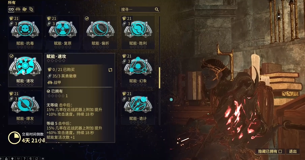 三傻战斗强调团队协作,不同职责的战甲需要搭配针对性的赋能以最大化效率。对于负责破除夜灵护盾的破盾手角色,推荐携带正直暗影和永恒猛攻,前者能提升增幅器的暴击伤害,后者则通过能量耗尽触发暴击率加成,两者配合可以大幅缩短破盾时间。负责输出夜灵关节的关节位,动量赋能几乎是必备选择,它能在狙击枪暴击时显著提升装填速度,确保对关节弱点的连续高效打击。而作为团队生存保障的奶妈,优先选择消磁赋能来抵消BOSS吼叫时带来的磁力异常效果,避免能量被清空导致技能中断;主教则通常携带速攻和充沛赋能,以增强技能释放流畅度并保障能量续航,维持无敌技能的覆盖。
