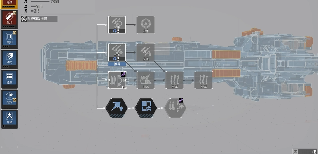 该舰船强化的核心思路应聚焦于最大化其防空效能与持续输出能力。对于导弹系统,技术值的分配应优先投资于提升伤害与缩短冷却时间,这是保障基础输出效率的关键。鉴于其防空导弹装置会优先锁定空中目标,额外强化导弹命中率能有效提升对高速战机的拦截成功率,这是发挥其防空特长的重点。对于火炮系统,除了常规的伤害与冷却强化外,激活其全面防空策略至关重要,该策略能使舰船转入专注防空的状态,从而与导弹系统构成更立体的对空火力网。