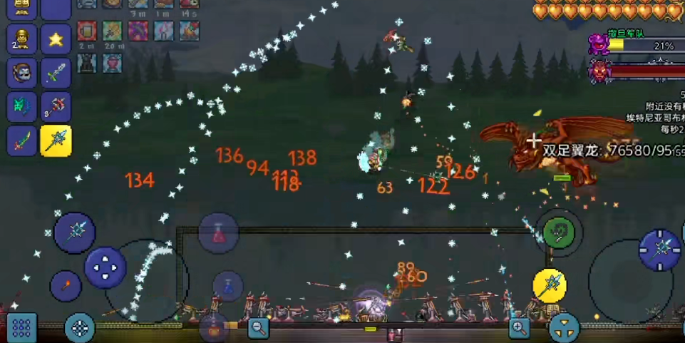 你需要在空中搭建一个至少一百二十三格长的平台,并将埃特尼亚水晶座放置于正中央,这能为战斗提供足够的机动空间。战斗中需要根据波次灵活调整策略,前几波应以快速清理靠近的近战敌人为主,进入中后期波次后,必须优先集火解决黑暗魔法师与食人魔等精英单位,防止其造成过大压力。最终波次出现的双足翼龙是最大威胁,切忌与其正面硬拼,应指派专人使用高机动性进行风筝战术,将其引导远离水晶核心区域,同时团队必须集中所有火力快速清除其召唤的天国飞龙,因为飞龙的撞击会对水晶造成毁灭性伤害,清理地面杂兵与保护水晶的任务需要与风筝战术同步进行。