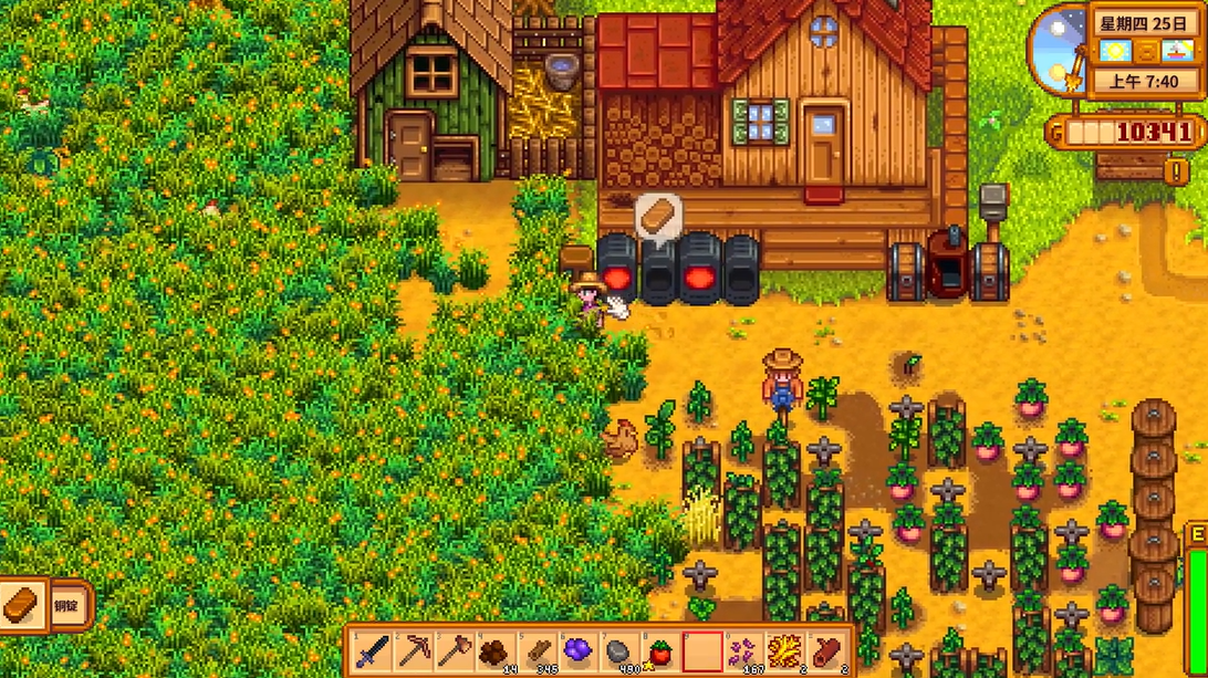 谷仓的核心作用是储存干草,为玩家饲养的动物提供稳定的食物来源。当玩家使用镰刀在农场上割草时,收获的干草不会进入背包,而是会自动传送到谷仓这种储存建筑中。一个谷仓可以储存最多240份干草,玩家只需将鼠标指向谷仓,就能随时查看当前的储存数量,这为管理农场资源带来了极大的便利。