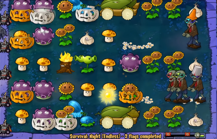 黑夜无尽模式的核心在于开局建立稳定的阳光经济与防御基础。首要任务是处理不断冒出的墓碑,它们是僵尸复活的温床,因此需要立即部署墓碑吞噬者高效清除。阳光菇是黑夜模式阳光的唯一稳定来源,性价比极高,应尽快种满至少一整排以保证后续能有充足的阳光资源进行植物部署,而免费的消耗品植物可以在防线出现缺口时应急使用,为调整阵容争取时间。