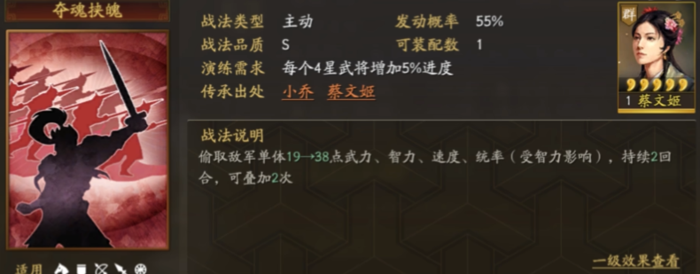 夺魂挟魄被广泛认为是替代智计的首选乃至最优方案。该战法虽然作用目标为单体,但其机制不仅能降低敌方的武力、智力、速度和统率四项属性,更能将削减的属性转移到施法者自身,形成双向增益。与智计相比,夺魂挟魄的发动概率更高,且属性偷取与叠加机制在持久战中能创造显著的属性差,极大增强己方生存与输出能力,特别适合周瑜、诸葛亮等高智力武将使用,其综合效益远超仅提供群体属性削减的智计。