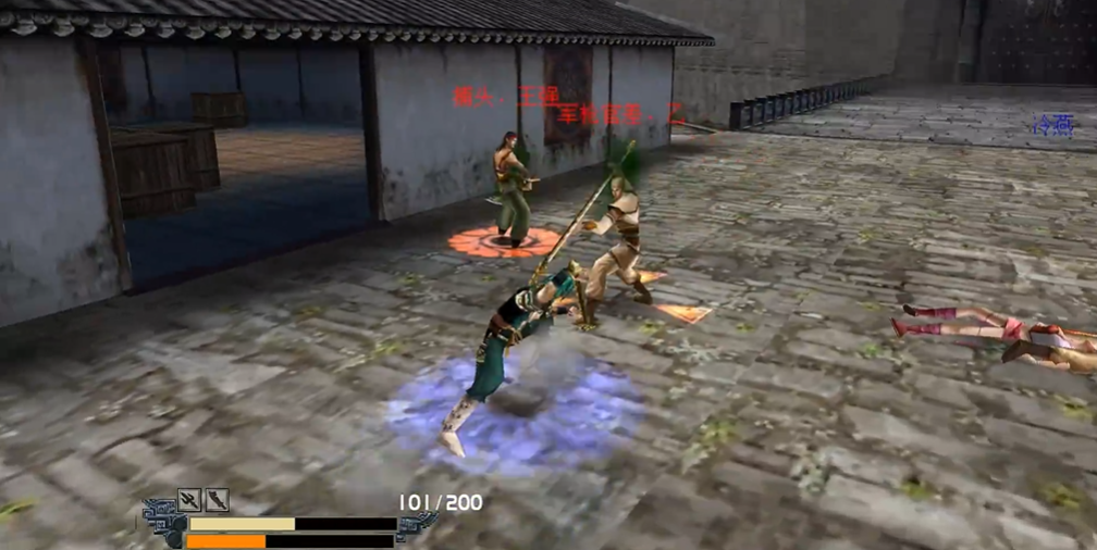 在初始官兵战后,玩家需立即转向击败夜猫子,该敌人持有火铳,容易在玩家释放大招时破招,因此优先击杀可减少干扰风险。过程中,若出现AI冷燕助阵,需注意其状态:一旦冷燕被击倒,应先将小兵引至远处,再返回按交互键救活她,以保持团队协作优势。推进时,初始位置后方角落有橘色宝石可拾取,提供临时增益;返回主干道后,优先攻击持大锤的官兵,因其伤害极高,击杀后拾取大锤能显著提升后续战斗效率。