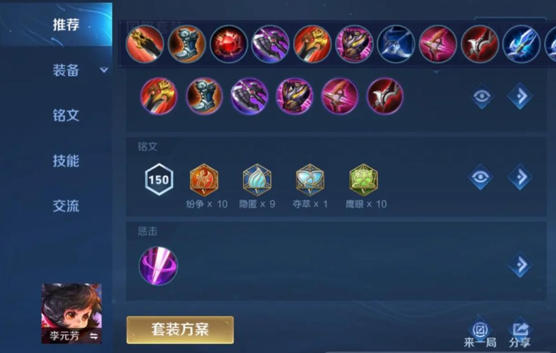 铭文搭配是奠定李元芳前期优势的基础。其输出主要依赖一技能叠加四层印记后的爆炸伤害,因此铭文属性应优先考虑攻速、物理穿透与暴击。一种主流方案是,红色铭文选择祸源或红月以提供暴击率与攻速,确保能快速叠满印记;绿色铭文必选鹰眼,它所提供的64点物理穿透能显著提升前期对任何英雄的压制力;蓝色铭文则常在狩猎与夺萃之间进行权衡,狩猎提供的移速和攻速能增强游走与手感,而夺萃带来的物理吸血则能提升线上或野区的续航能力,具体搭配比例可根据个人打法偏好进行微调,例如采用数个夺萃与数个狩猎混搭的方式。