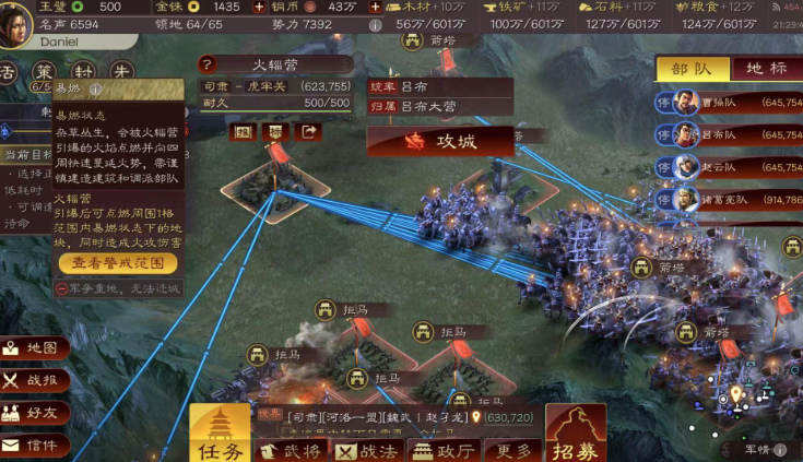 操作军团的核心是组建多支队伍并统一指挥,这涉及任命都督或太守来管理集结的部队。玩家需先加入同盟,并在攻占郡城后被任命为太守后,才能开启军团功能。成为太守后,玩家可以组建军团,一个军团可以集结五支队伍,这五支队伍可以来自不同玩家,最终交由军团太守进行统一调配指挥。操作时,通过集结指令将五支不同玩家的队伍整合为一个军团,交由太守统一调配,这不仅简化了多部队操作的繁琐性,还能在同盟成员缺席时代为参战。