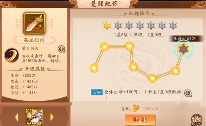 觉醒后的成长是一个持续深化的过程,涉及配饰升星与属性强化等多个维度。成功完成初次觉醒后,会开放觉醒配饰系统,配饰可以通过消耗强化石进行升星,从前两星相对容易的消耗开始,逐步提升至更高的星级,每一次升星都能为武将带来可观的基础属性加成,例如生命、攻击和防御的百分比增长。将星觉醒本身也会解锁或强化武将的特定技能,这些技能可能是增加暴击率、抗暴率,或是在血量低于一定比例时触发增伤、免伤效果,从而在实战中提供关键的战术支持。觉醒与武将的突破、升星系统侧重点不同,觉醒更侧重于个人属性的深度成长和技能机制的改变。